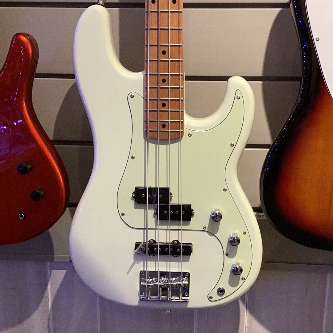 4 string Bass olympic white maple neck mint guard.