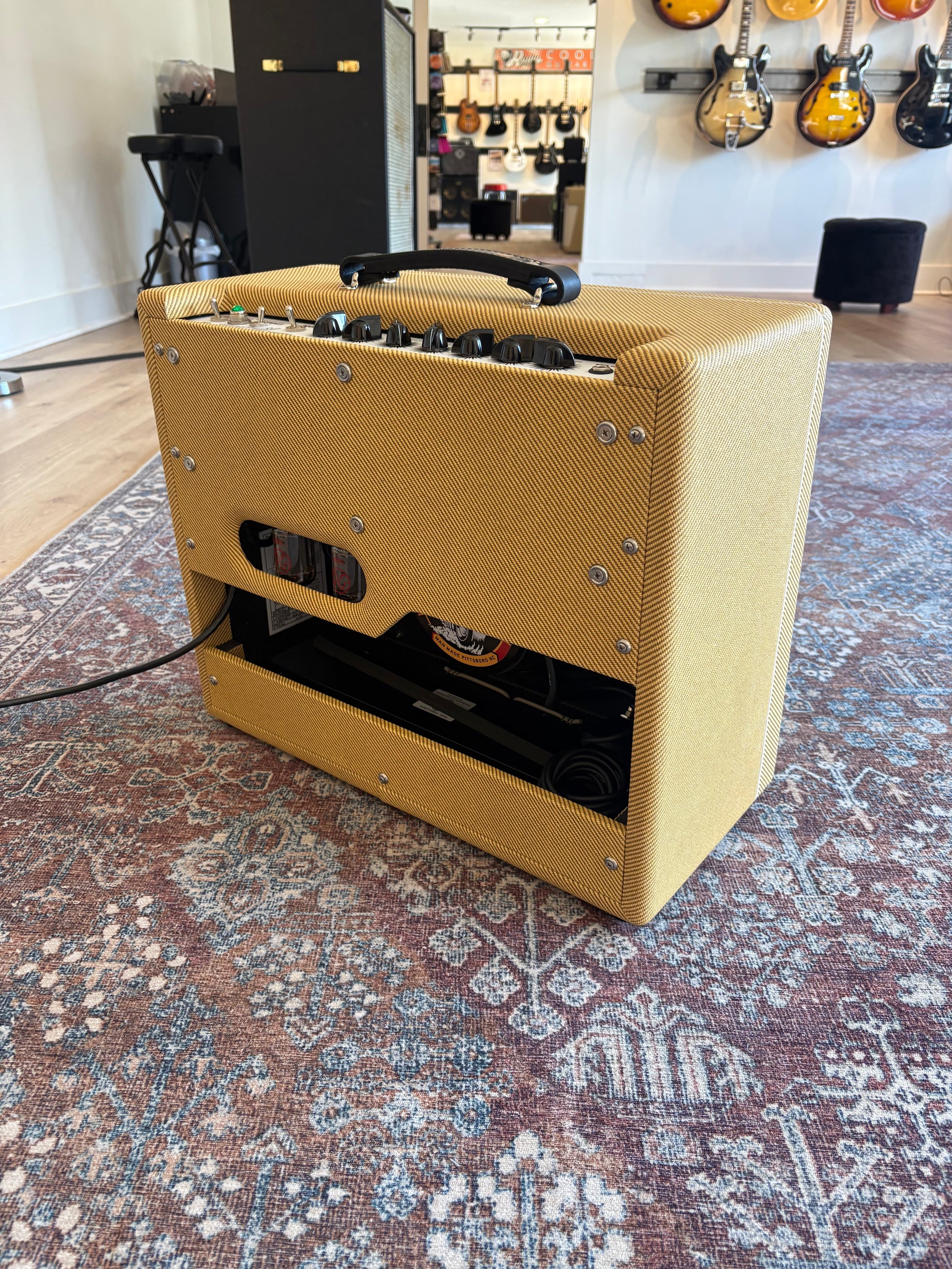 The Rambler also boasts an in-house crafted, dovetail-jointed cabinet made from solid North Carolina yellow pine, with floating speaker baffle for optimal resonance and sonic character. A comfortable, heavy duty leather carrying handle and standard black Tolex covering or a range of custom-color options complete the package.