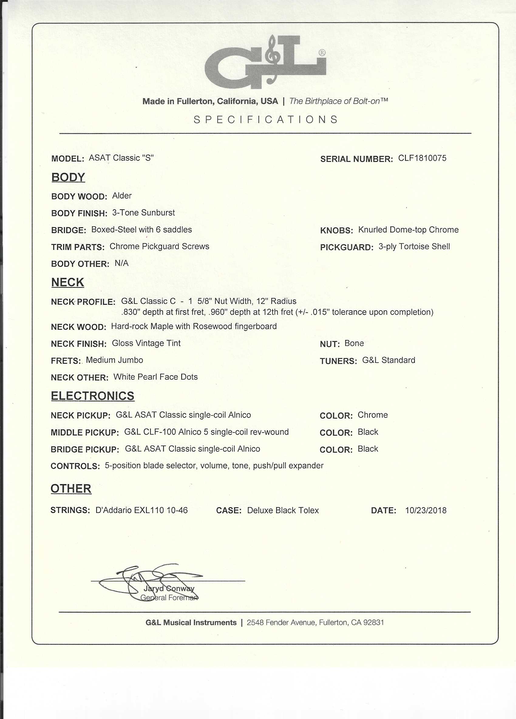 Neck: G&L ASAT Classic single coil Alnico